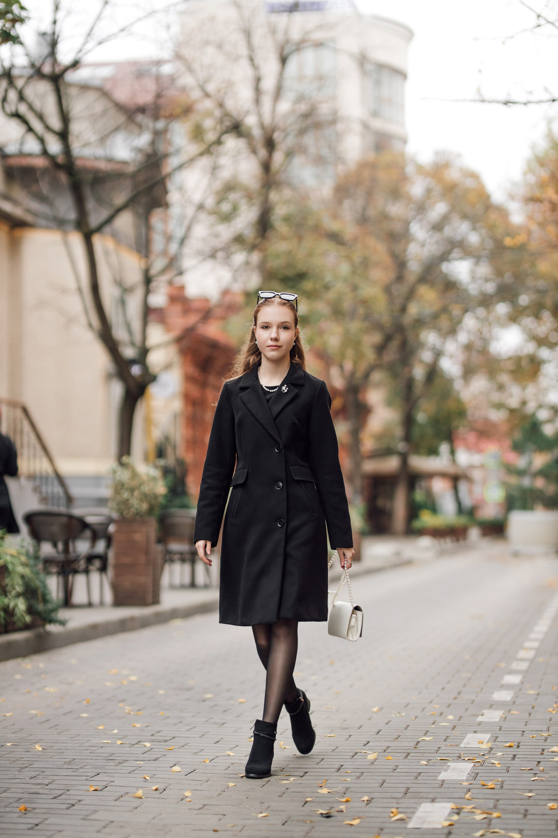 Мама и дочь, осенняя городская прогулка